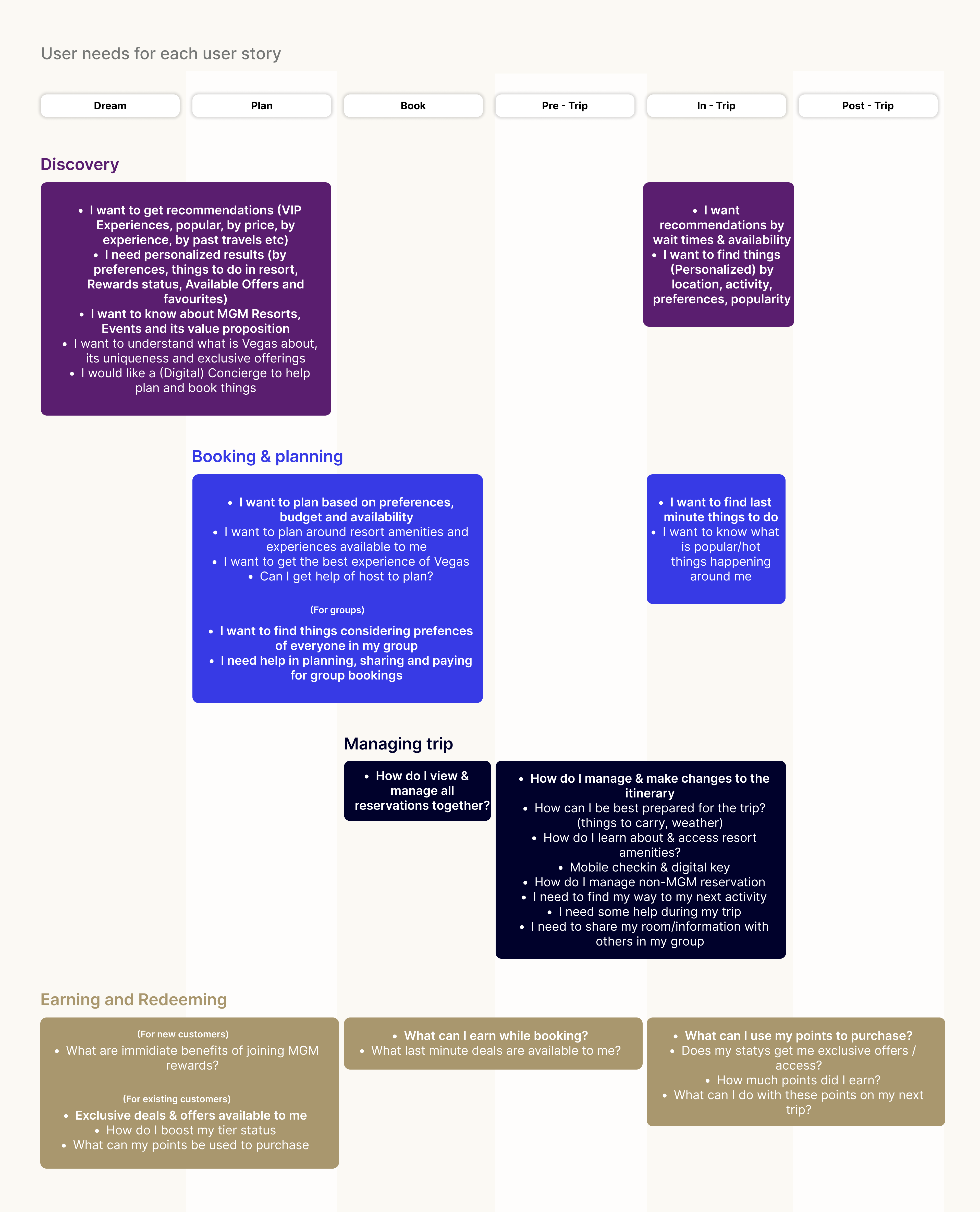 In 2022, MGM Resorts digital experience lacked the finesse of a modern travel platform. The platform was old and felt disconnected and barely allowed guests to accomplish basic tasks. A new strategy was required to redesign the experience around the guests and their needs, while creating a platform which can grow organically in future.